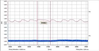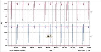 Zapis z pomiaru napięcia pierwotnego na cewce zapłonowej w Citroenie Saxo